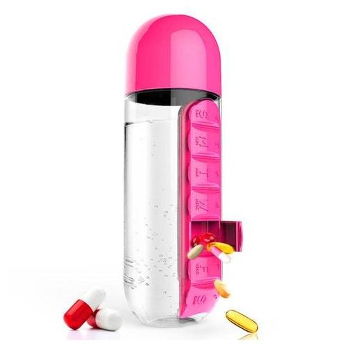 Outdoor Portable Water Bottle With Medicine Box-600ML-Pink