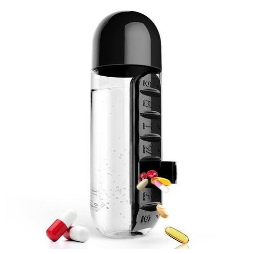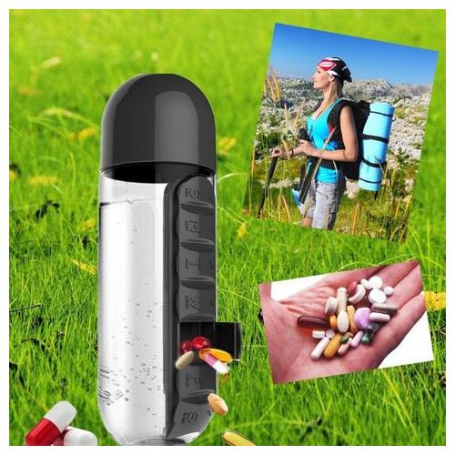 Outdoor Portable Water Bottle With Medicine Box-600ML-Black
