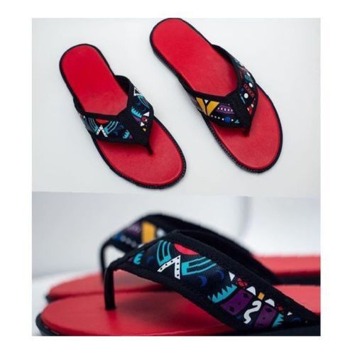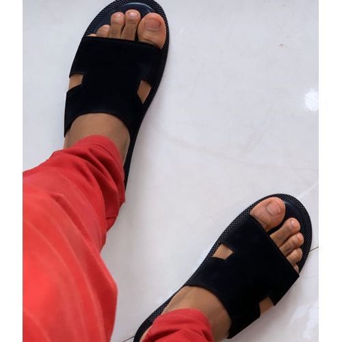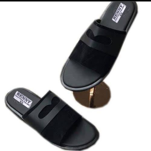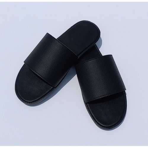 Mens/Guys Quality Black Leather Pam Slippers - Black Palm