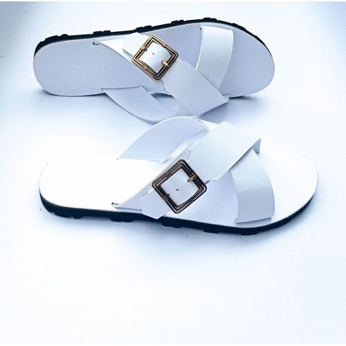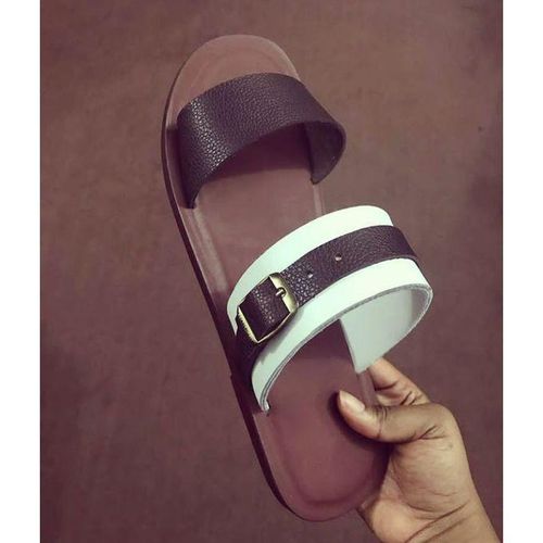 Two-Layered Palm Slippers With Buckle - White And Brown