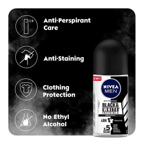 NIVEA Black & White Invisible Original Anti-Perspirant Roll-on For Men, 4...