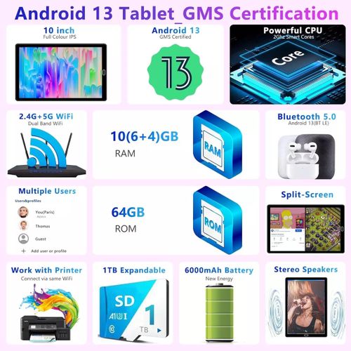 Goodtel Tablet Android 13 10.1' 64GB?1TB Expandable) Red 10GB RAM OctaCo...