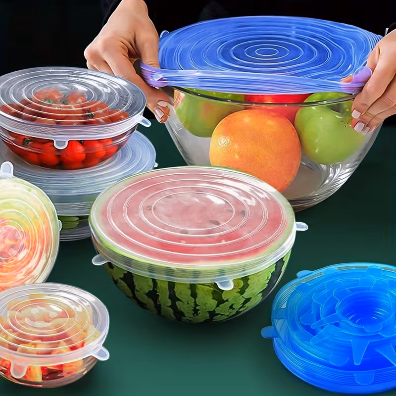 Set of 6 Silicone Stretch Lids, Designed for Reusable And Durable Food Storag...