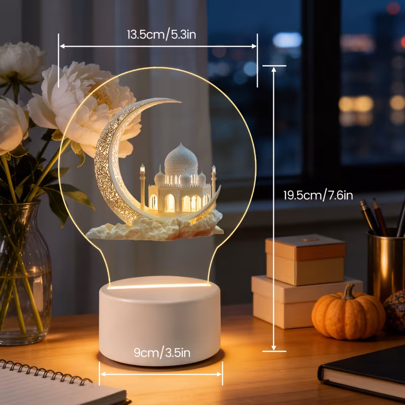 Acrylic Ambient Night Light Shaped Like an Islamic, a Special Gift for Ramada...