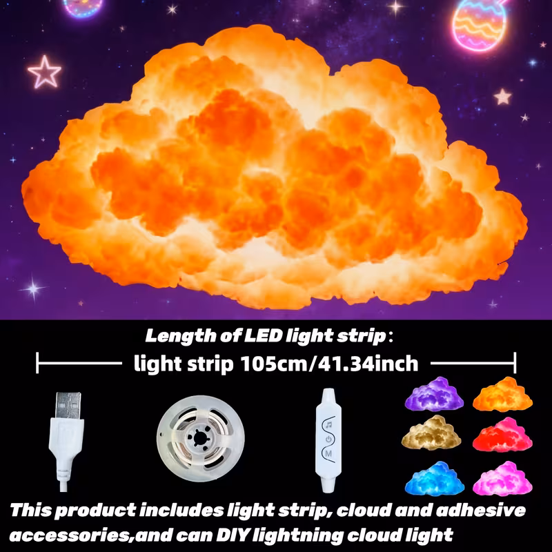 AJK Upgraded Cloud-Shaped Night Light - Wall-Mounted DIY Creative Color-Free ...