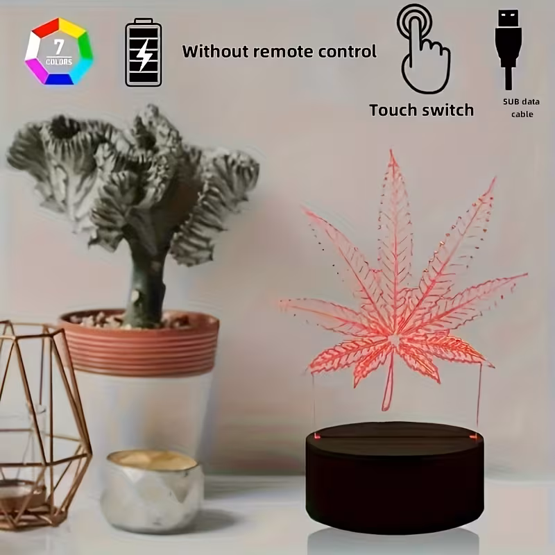 USB Powered 3D Maple Leaf LED Night Light 7 Color Changing Mood Lamp Home Dec...
