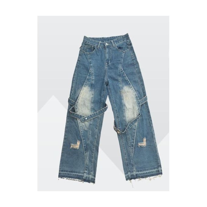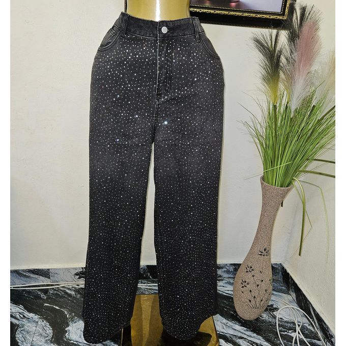 High-Waisted Asymmetrical Wide-Leg Denim Jeans with rhinestone for Women