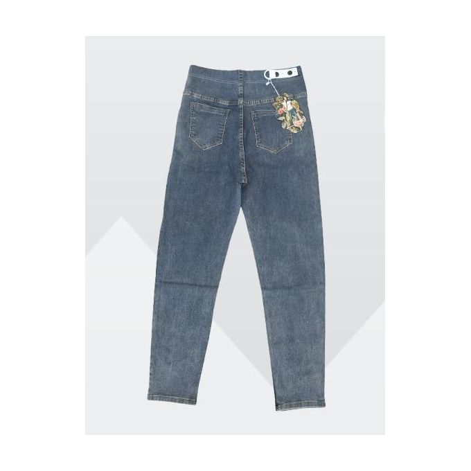 High quality ladies long length baggy cut patterned boyfriend jeans