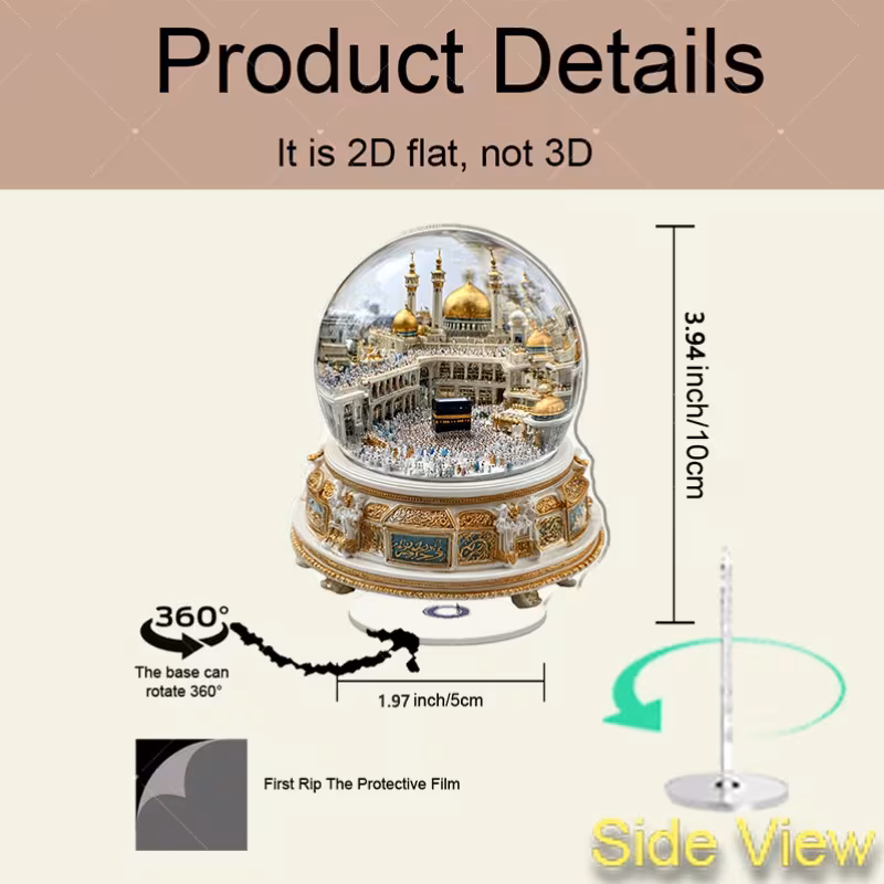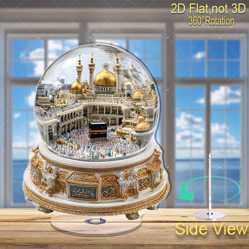 2D Flat - 2D Plane, a 360° Rotating Snow Globe Statue of The Kaaba in Mecca -...