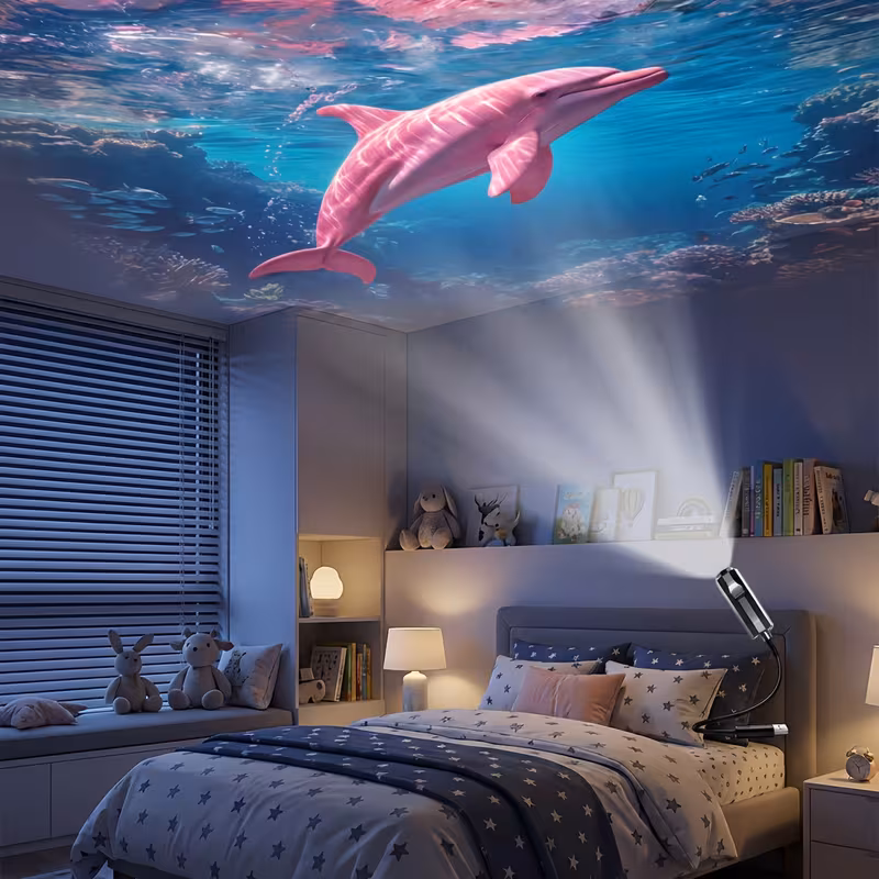 A USB Projector Lamp Featuring Six Ocean-Themed Modes, This Portable Transpar...