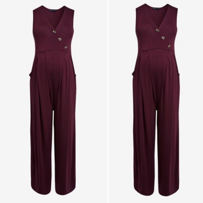 Side Button Berry Maternity And Nursing Jumpsuit