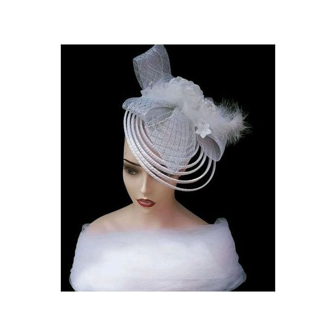 Lovely White Fascinator On A Base Beneath