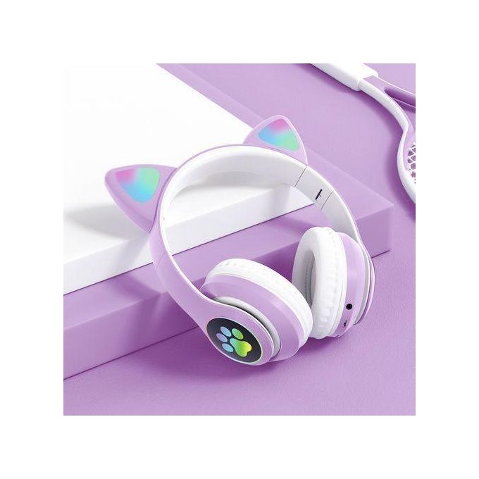 Cute Cat Headphones Bluetooth Girls Kids Glowing Wireless Earphones With Buil...