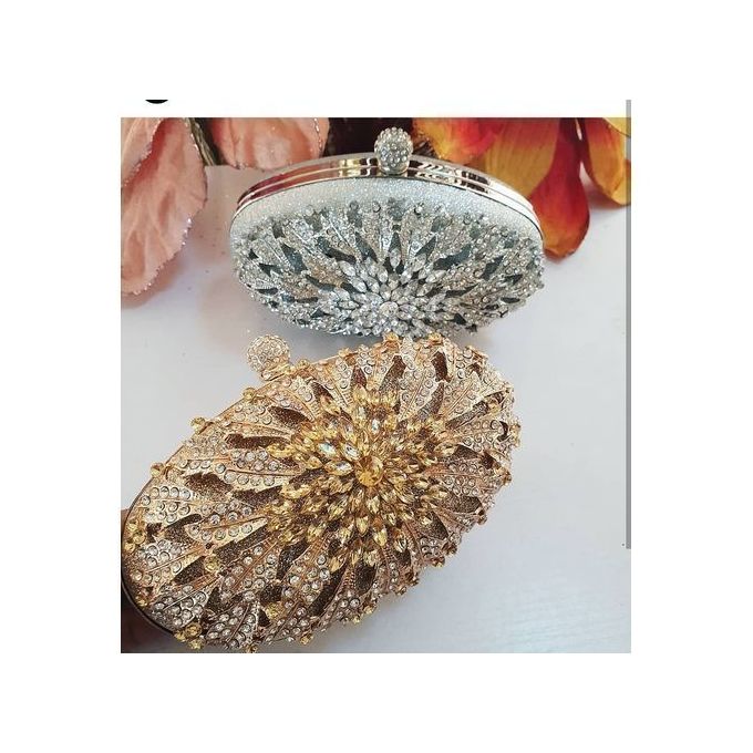 Two Crystal Stunning Purses Gold And Silver