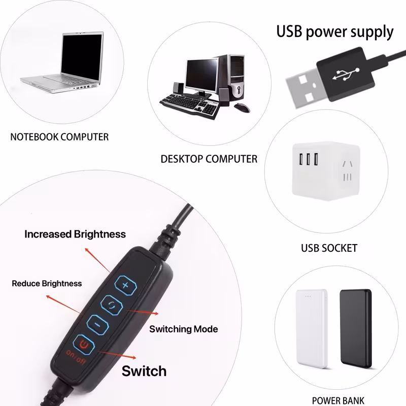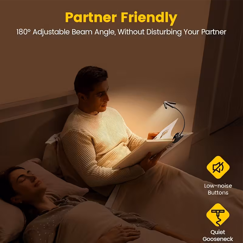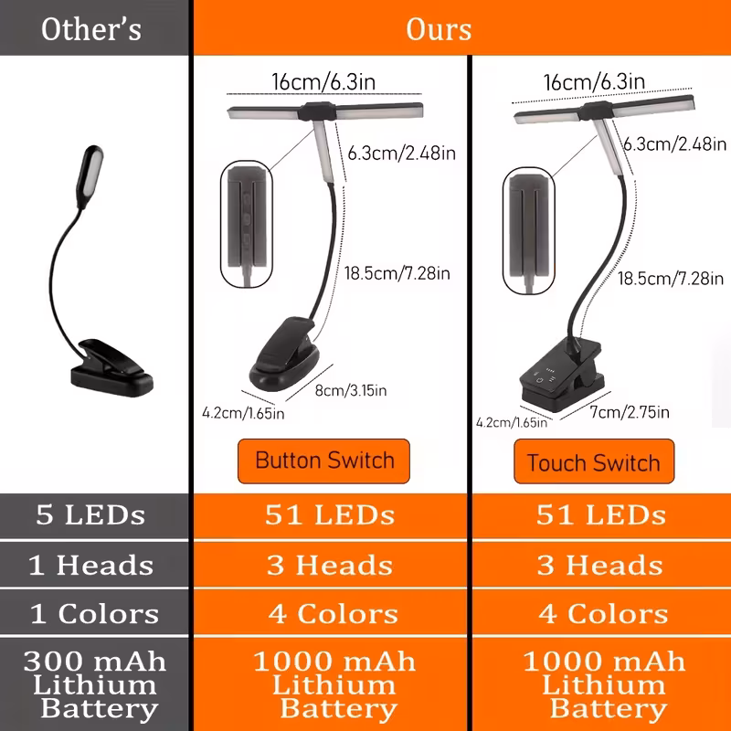 51 LED 3-Head Clip Reading Light with 4-Color Adjustable Brightness, 1000mAh ...