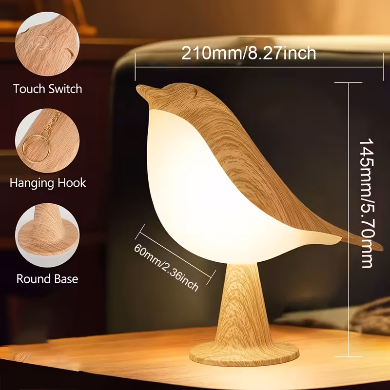 1pc Dimmable Bird Desk Lamp with Touch Control | Cordless Table Lamp with 3 C...