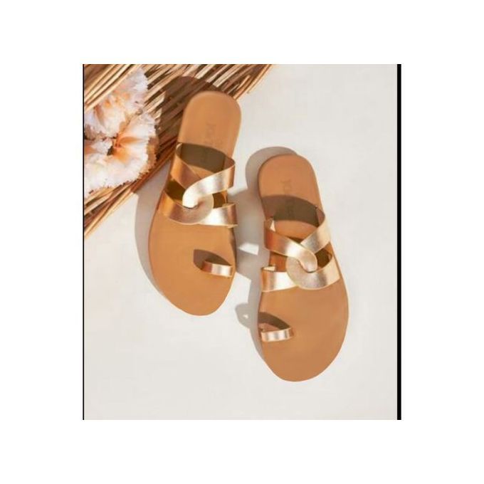 Ladies Flat Metallic Slippers - Rose Gold