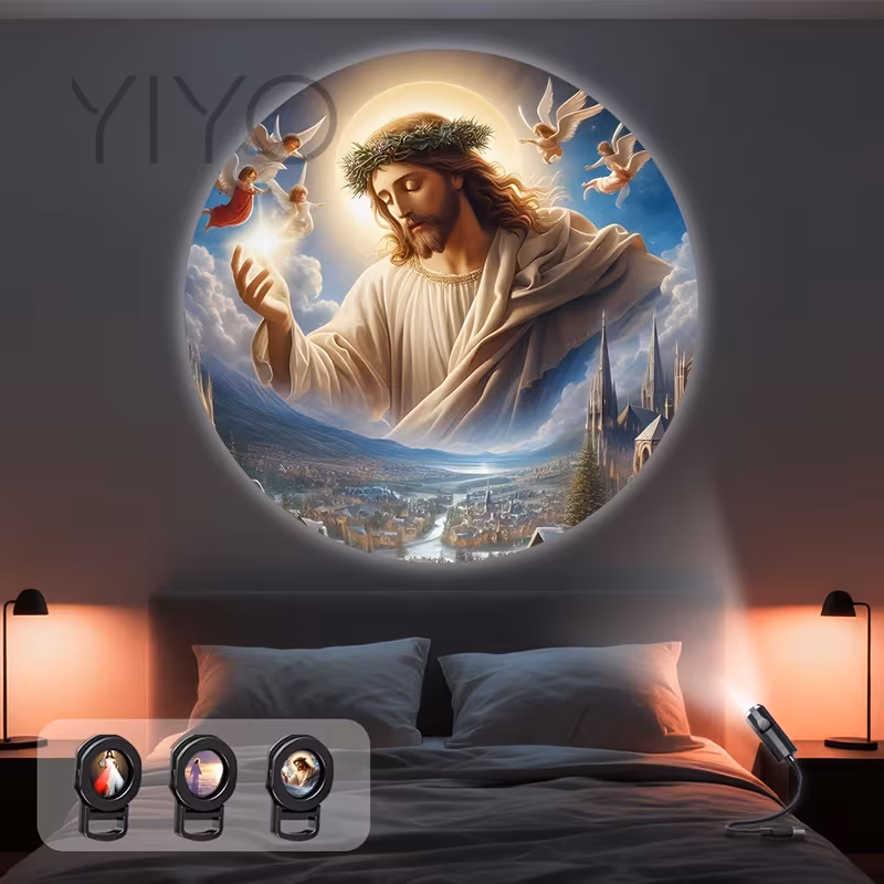 Jesus Christian LED Projector Light | Virgin Mary USB Night Light, Indoor Atm...