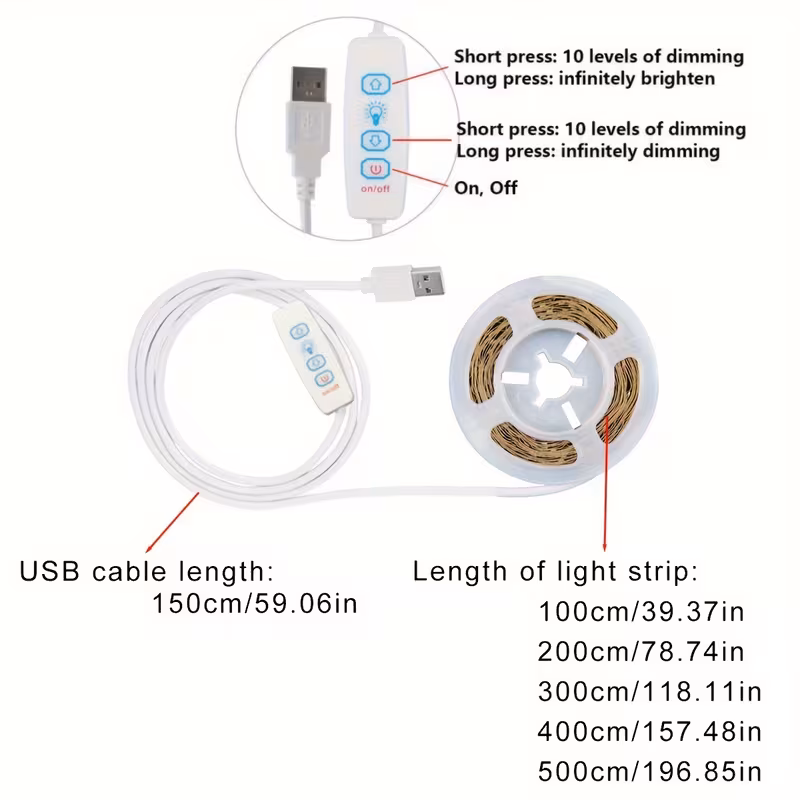 Ambient Glow, USB-Powered Warm White LED Strip Light, 99.97-499.87cm Adjustab...