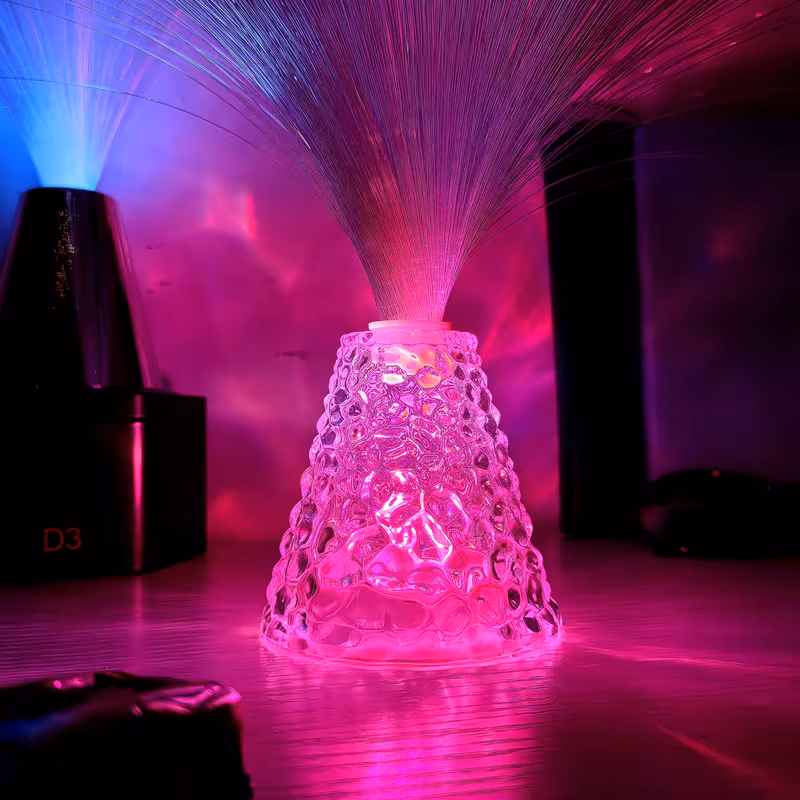 7 Color Changing Water Ripple Fiber Optic Lamp, Transparent Crystal Base Star...
