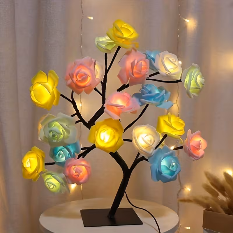 1pc LED Rose Flower Table Lamp, Valentine Tree Fairy Lights 24LED Rose Flower...