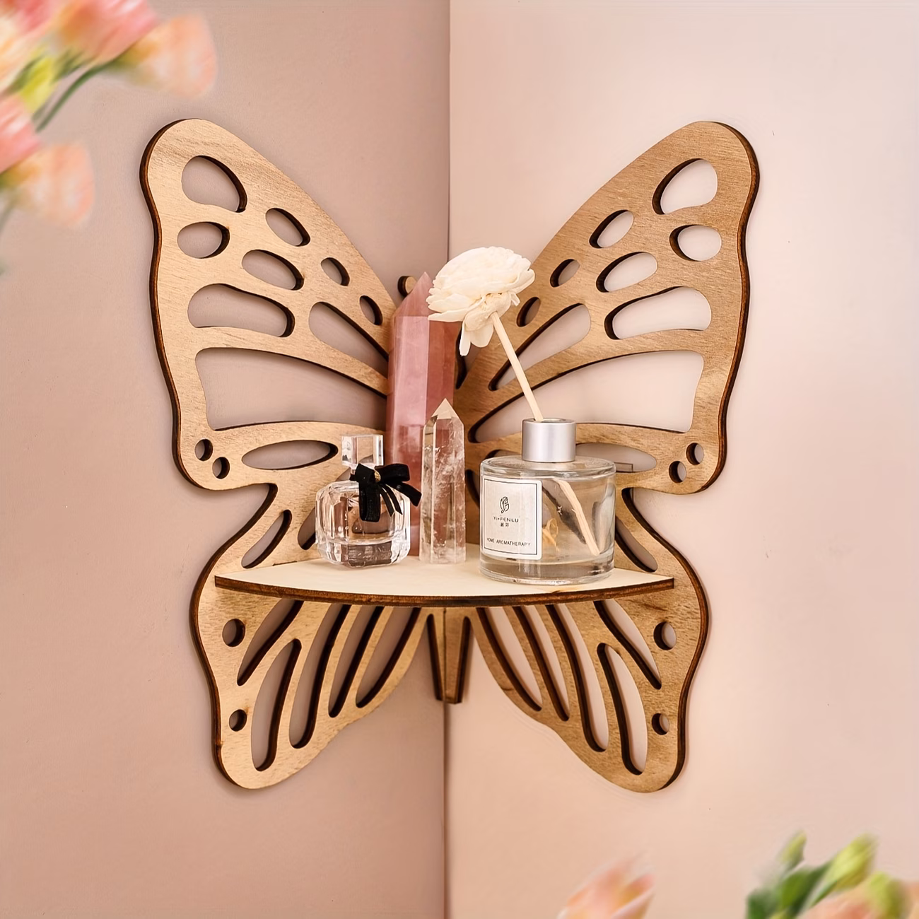 1pc Creative Minimalist Nail-Free Wall Display Shelf, Natural Wood Color Butt...